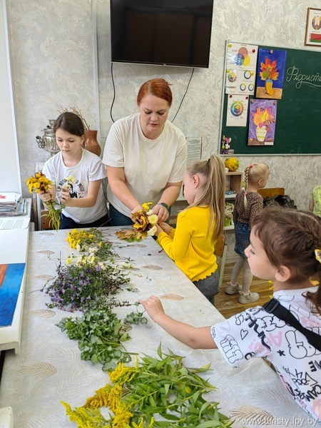 Под руководством педагога дополнительного образования Михалени Татьяны Витальевны в руках каждого участника оживали осенние листья, веточки и цветы, превращаясь в неповторимые букеты.